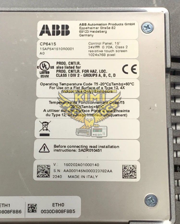 The ABB CP6415 (Ordering Code: 1SAP541510R0001) is a 15-inch HMI control panel from the CP600 2nd Generation series, engineered for seamless human-machine interaction in industrial automation environments. It features a 1024×768 resistive TFT touch screen with 64K colors, a Chromium Browser for web-based visualization, and an ARM Cortex-A8 1 GHz processor for responsive operation. Optimized for PB610 applications, it integrates Industrial Ethernet, USB, RS-232/485, and an SD card slot for flexible connectivity, enabling real-time monitoring of DCS, PLC, and motion control systems, rapid parameter adjustment, and efficient fault diagnostics. With IP66 front/IP20 rear protection, a wide operating temperature range, and robust construction, it excels in harsh industrial settings, enhancing operational efficiency and reducing downtime in manufacturing, energy, and process industries.