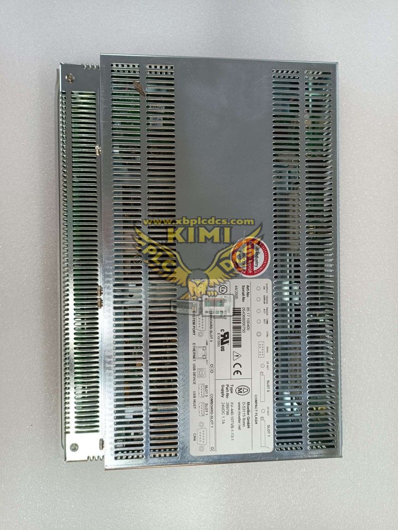 The EATON XV-440-10TVB-1-13-1 is a 10.4-inch industrial HMI touch panel from the XV400 series, designed for intuitive operator control and real-time process monitoring in manufacturing, packaging, material handling, and energy management systems. It features a VGA (640×480) color TFT LCD with infrared touch technology (anti-glare laminated safety glass) for reliable operation in harsh industrial environments, even with gloves. The panel supports HMI-PLC functionality (retrofittable via license) with Windows CE OS, enabling custom logic development and seamless integration with Eaton PLCs and third-party controllers via Ethernet (10/100Base-TX), RS232, CAN/easyNet, and USB (Host/Device) interfaces. Its compact form factor (345×260×88mm, ~2.8kg) and IP65 front/IP20 rear protection allow embedded mounting in control cabinets, while a wide operating temperature range (0°C to +50°C) and 32W power consumption ensure reliable 24/7 operation. With UL 60950-01 and CSA-C22.2 No. 60950-01 certifications, it meets global industrial safety standards for mission-critical applications.