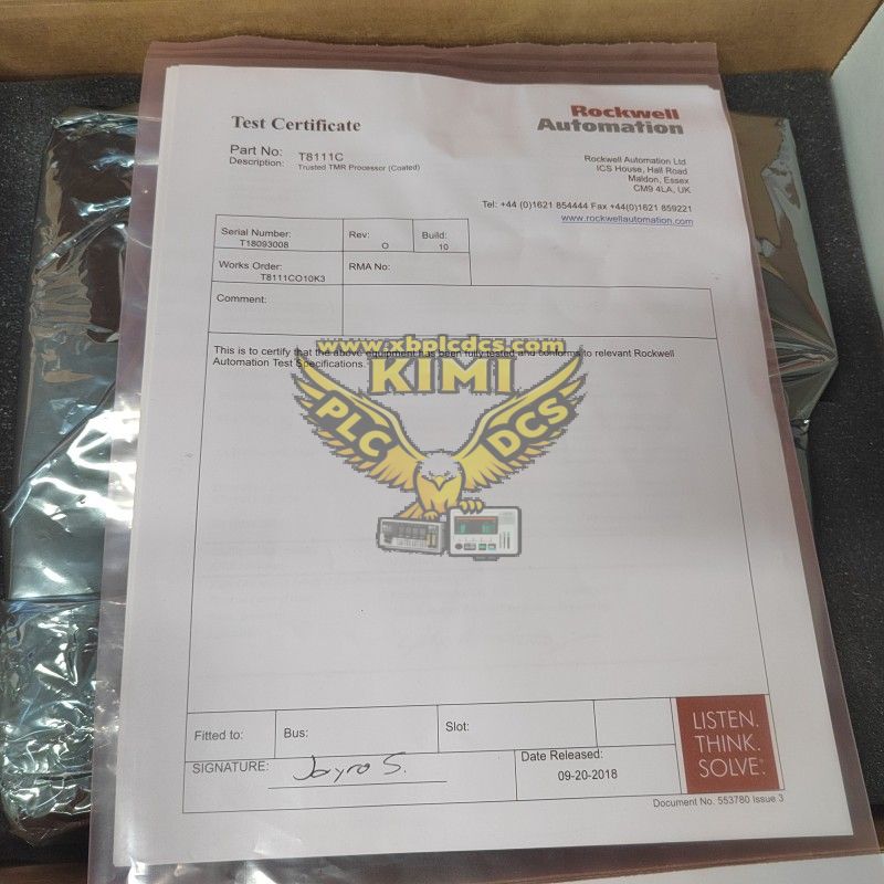 The ICS TRIPLEX T8111C / T8111 is the core Trusted TMR processor module of Rockwell Automation's Trusted safety system, adopting a 3-2-0 triple modular redundant architecture with hardware voting to ensure continuous operation even when a single processor fails. It integrates HIFT (Hardware Implemented Fault Tolerance) technology, automatic fault handling, and time-stamped fault logging, supporting IEC 61131-3 programming languages for flexible application development. The T8111C is the conformal-coated version of the T8111, providing enhanced corrosion resistance for harsh industrial environments with sulfur-containing gases or high humidity, both designed for critical applications like emergency shutdown (ESD), fire and gas monitoring, turbine control, and process safety instrumented systems (SIS) requiring SIL 3 integrity.